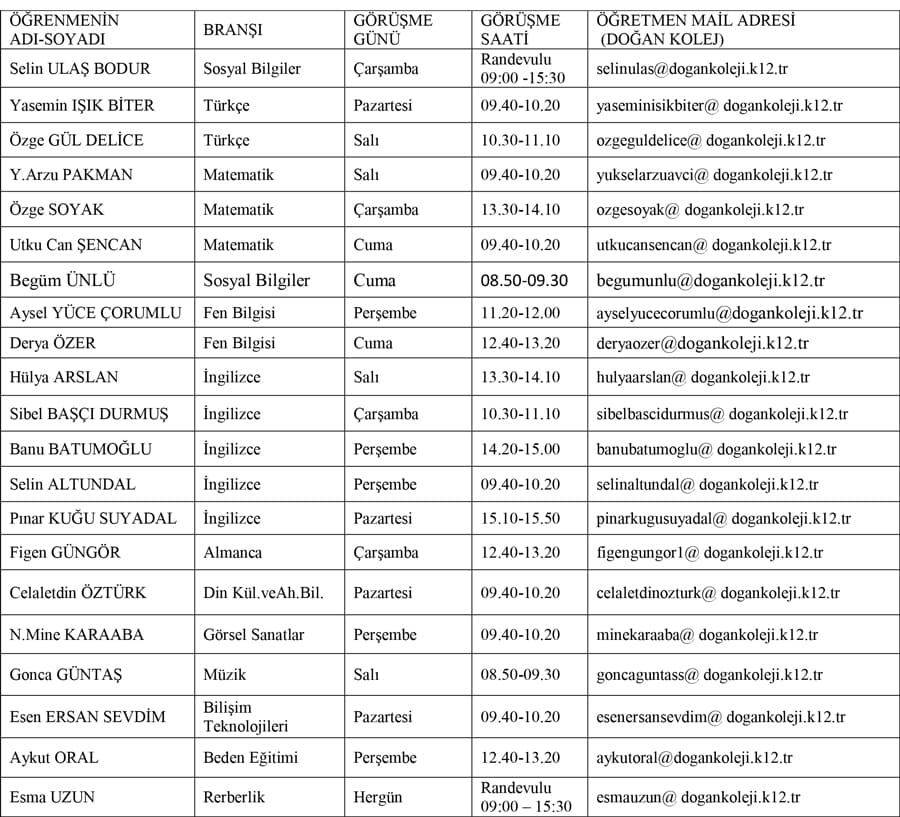 VELİ – ÖĞRETMEN GÖRÜŞME GÜNLERİ